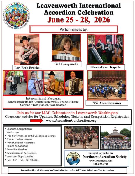 The 2026 Leavenworth International Accordion Celebration, will be held in Leavenworth, Washington, USA from June 25th to 28th, 2026.
