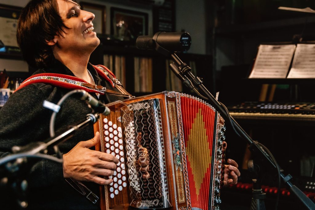 Throughout his career, Alex has made significant contributions to the music world. At 18, he performed on Walter Ostanek’s Grammy-winning album “Music and Friends,” sparking renewed interest in polka among younger musicians. As a leader in the polka music renaissance, Alex performs styles from Germany, Austria, Slovenia, Croatia, Italy, Mexico, Poland, and America, infusing them with a modern twist that appeals to a broad audience. In 2022, his dedication was recognized with a Lifetime Achievement induction into the International Polka Association Hall of Fame.