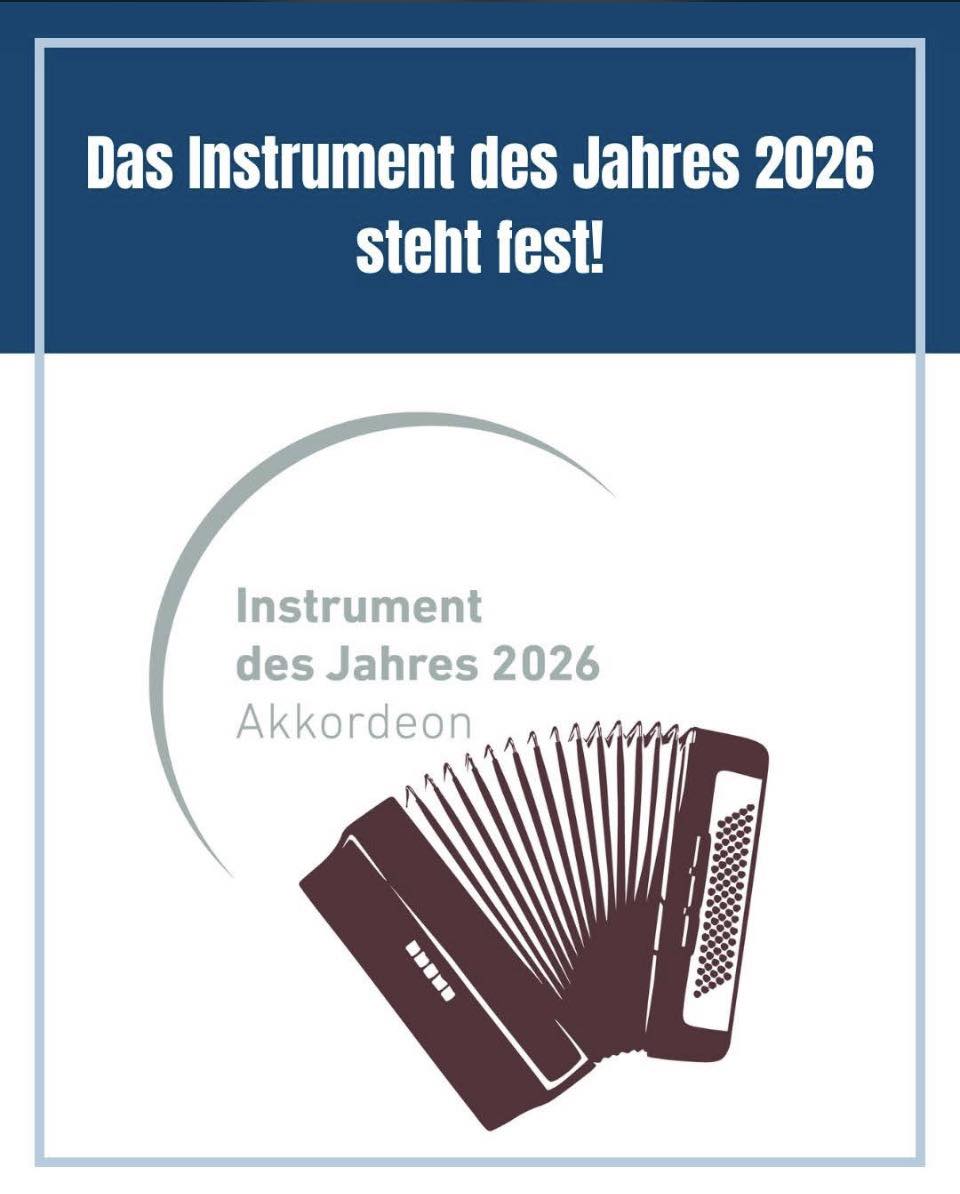 The German Conference of State Music Councils has chosen accordion, Instrument of the Year 2026. This means that a versatile, modern and internationally acclaimed instrument will be the focus of the musical public for a whole year. The German Harmonica Association (DHV), German member of the CIA, welcomes this election, as it offers all musicians, orchestras and associations a unique opportunity to make the versatility and expressive power of the accordion visible.